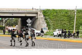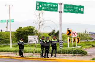 CELAYA, GUANAJUATO. 10JULIO2024.- 3 Policías viales, destacados en un retén de revisión en la carretera Celaya-Salvatierra, a la altura del Libramiento Sur, fueron asesinados. Ya se encuentran ahí para realizar las primaras indagatorias, la Guardia Naciona así como la policía municipal. FOTO: DIEGO COSTA/CUARTOSCURO.COM