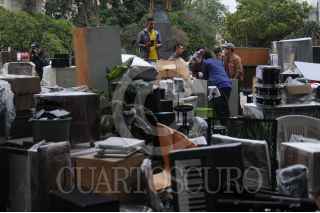 CIUDAD DE MÉXICO, 11JULIO2024. - Instrumentos musicales fueron dejados en la calle luego de que la escuela de música Fermatta fue desalojados esta mañana. FOTO: DANIEL AUGUSTO /CUARTOSCURO.COM