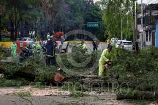 CIUDAD DE MÉXICO, 11JULIO2024.- Personal de protección civil y de bomberos de la Ciudad de México trabajaron para retirar un árbol que cayó durante la mañana en la lateral de Circuito Interior Río Churubusco, en la alcaldía Iztapalapa. La circulación se vio afectada al menos por una hora en lo que se realizaron las labores, cabe mencionar que la noche de ayer una fuerte lluvia azotó el sur de la ciudad lo que pudo provocar el reblandecimiento del suelo. FOTO: GALO CAÑAS/CUARTOSCURO.COM
