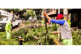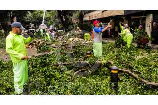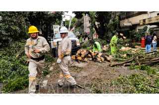 CIUDAD DE MÉXICO, 11JULIO2024.- Trabajadores de limpieza de la Ciudad y de la Comisión Federal de Electricidad, despejaron la calle de Aguascalientes en la Colonia Condesa, después de que la lluvia de ayer, derribara árboles y esto provoco que se fuera el suministro de energía electrica. Viviendas y comercios de esta zona en la alcaldía Cuauhtémoc se vieron afectados. FOTO: VICTORIA VALTIERRA/CUARTOSCURO.COM