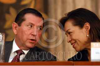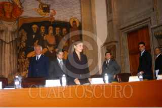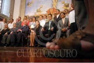 MÉXICO D.F. 13AGOSTO2007.-Josefina Vázquez Mota Secretaría de Educación Pública, acompañada de Marcelo de los Santos Gobernador de San Luis Potosi, Zeferino Torreblanca Galíndo Gobernador de Guerrero e Ismael A. Hernández Deras Gobernador de Durango y Mario Marín Gobernador de Puebla durante la firma del Convenio Para la Ejecución de Acciones de Fomento Educativo, esto en las instalaciones de la SEP. FOTO: GUILLERMO PEREA/CUARTOSCURO.COM