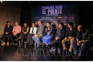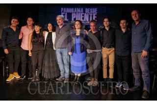 CIUDAD DE MÉXICO, 11JULIO2024.- Ernesto Rocha, Ricardo Ramos, Estephany Martínez, Montserrat Marañón, Roberto Sosa, Martín Peralta, Jonathan Ontiveros y Rodrigo Murray, forman parte del elenco de la la obra de Arthur Miller dirigida por Antonio Castro "Panorama desde el puente" que sera presentada por la Sociedad Artística Sinaloense (SAS) del 26 de julio al 18 de agosto en el Teatro Helénico. Esta creación escénica que integra elementos de la tragedia griega narra la historia de una familia emigrante en Estados Unidos y destaca la fragilidad del sueño americano. FOTO: ALICE MORITZ/CUARTOSCURO.COM