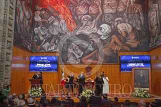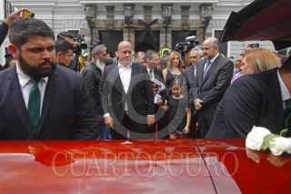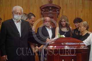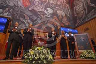 GUADALAJARA, JALISCO. 11JUNIO2024.- Esta mañana en las instalaciones del Paraninfo Enrique Díaz de León de la Universidad de Guadalajara (U. de G.), se llevo a cabo un homenaje de cuerpo presente al Sr. Enrique Javier Alfaro Anguiano quien fue rector de la casa de estudios en periodo (1983-1989) y quien fuera padre del gobernador del estado Enrique Alfaro Ramírez. A mencionado evento acudieron personalidades de la política nacional y local entre los que destacan Pablo Lemus Navarro, gobernador electo de Jalisco, Dante Delgado presidente nacional de MC y Jorge Máynez ex candidato a la presidencia de México, así como los familiares mas allegados de la Familia Alfaro Ramírez, Alfaro Anguiano. FOTO: FERNANDO CARRANZA GARCIA / CUARTOSCURO.COM