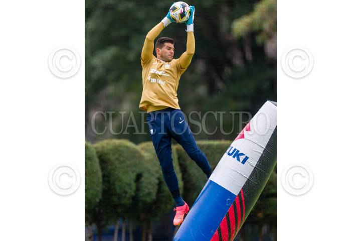CIUDAD DE MÉXICO, 11JULIO2024.- Julio González, portero de Pumas, durante el entrenamiento en La Cantera. Los universitario señalaron que el partido contra Santos saldrán a jugar como si estuvieran en CU. FOTO: PRENSA PUMAS/CUARTOSCURO.COM