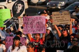 MEXICALI, BAJA CALIFORNIA, 12JULIO2024.- la tarde de ayer, colectivas, mujeres y sociedad en general se dieron cita en el monumento a Benito Juárez, sobre la avenida Justo Sierra; para exigir justicia por el feminicidio de Paola Bañuelos, quien el pasado domingo había sido reportada como desaparecida después de abordar un DiDi, al salir de un negocio de entretenimiento nocturno. La mañana del jueves fue localizado su cuerpo en la zona de Oasis Campestre, periferia de la ciudad fronteriza. FOTO: ADOLFO VLADIMIR /CUARTOSCURO.COM