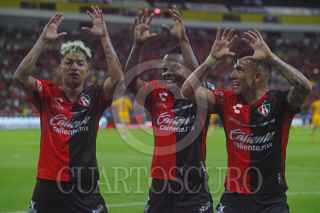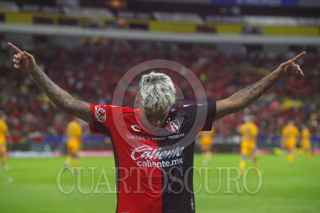 GUADALAJARA, JALISCO, 12JULIO2024.- Nicolás Ibáñez, jugador de Atlas celebra su anotación, esto en partido correspondiente a la jornada 2 del Torneo Apertura 2024 de la Liga MX, en donde se enfrentan los equipos de Atlas vs Tigres, en juego que se lleva a cabo en el Estadio Jalisco, el marcador al momento es de 1-1. FOTO: FERNANDO CARRANZA GARCIA / CUARTOSCURO.COM