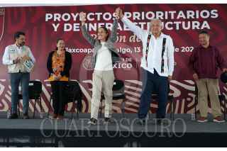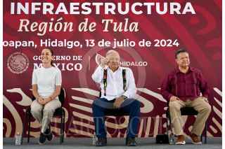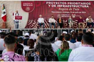 TLAXCOAPAN, HIDALGO, 13JULIO2024.- Andrés Manuel López Obrador, presidente de México, y Claudia Sheinbaum Pardo, virtual presidenta electa de México, presidieron el evento de Evaluación de proyectos prioritarios y de infraestructura, región Tula en la Unidad de Medicina Familiar (UMF) No. 37. En compañía de: Germán Arturo Martínez Santoyo, director general de la Comisión Nacional del Agua; Zoé Robledo Aburto, director general del Instituto Mexicano del Seguro Social; María Luisa Albores González, secretaria de Medio Ambiente y Recursos Naturales; Julio Ramón Menchaca Salazar, gobernador Constitucional del Estado de Hidalgo; Octavio Romero Oropeza, director general de Petróleos Mexicanos y Juan Pablo de Botton Falcón, subsecretario de Egresos de la Secretaría de Hacienda y Crédito Público. FOTO: PRESIDENCIA/CUARTOSCURO.COM