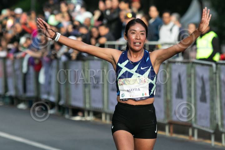 CIUDAD DE MÉXICO, 14JULIO2024.- Mayra Sánchez fue la ganadora del tercer lugar en l categoría femenil del Medio Maratón de la Ciudad de México BBVA, que tuvo como punto de salida el Monumento del Caballito al Ángel de la Independencia. FOTO: MOISÉS PABLO/CUARTOSCURO.COM