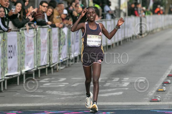 CIUDAD DE MÉXICO, 14JULIO2024.- Kimutai Jepkosgei llegó en segundo lugar en la categoría femenil del Medio Maratón de la Ciudad de México BBVA, que tuvo como punto de salida el Monumento del Caballito al Ángel de la Independencia. FOTO: MOISÉS PABLO/CUARTOSCURO.COM