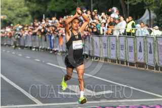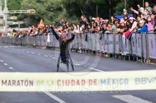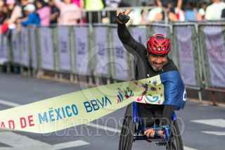 CIUDAD DE MÉXICO, 14JULIO2024.- Gonzalo Valdovinos González ganó el primer lugar en la categoría de silla de ruedas del Medio Maratón de la Ciudad de México BBVA, que tuvo como punto de salida el Monumento del Caballito al Ángel de la Independencia. FOTO: MOISÉS PABLO/CUARTOSCURO.COM