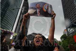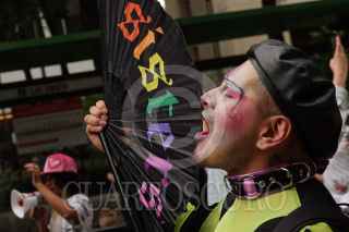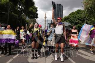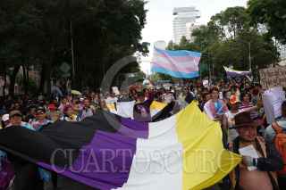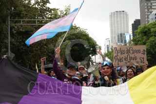 CIUDAD DE MÉXICO, 14JULIO2024.- Integrantes de la comunidad No Binarie marcharon para exigir justicia por Le Magistrade Ociel Baena a ocho meses de su transfeminicidio. La protesta dio inicio en el Ángel de la Independencia y termino en la Estela de Luz. FOTO: GRACIELA LÓPEZ/CUARTOSCURO.COM