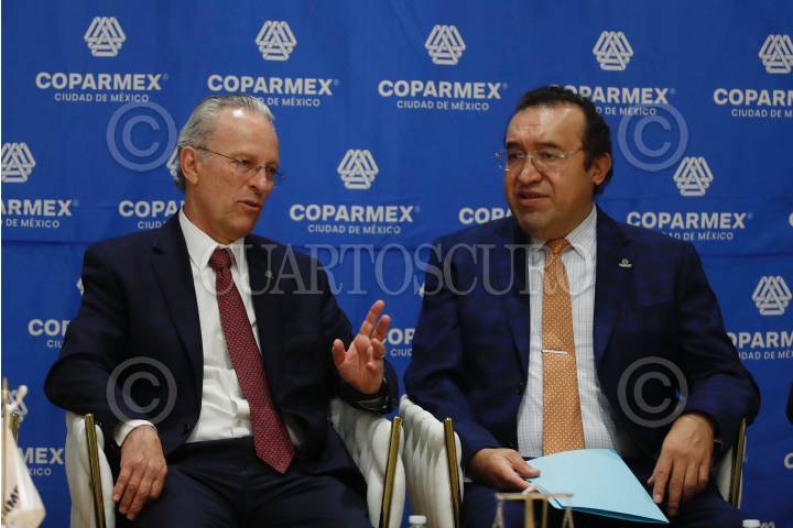CIUDAD DE MÉXICO, 15JULIO2024.- José Medina, presidente de Coparmex, y Armando Zuñiga, presidente saliente de la Coparmex, participaron en el Foro: Reforma Judicial, realizado en la sede la Barra Nacional de Abogados, en la alcaldía Álvaro Obregón. FOTO: CUARTOSCURO.COM