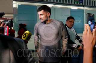 CIUDAD DE MÉXICO, 16JULIO2024.- Ignacio Pussetto, nuevo refuerzo del equipo de fútbol de la Universidad Nacional Autónoma de México (UNAM), arribó esta mañana al Aeropuerto internacional de la Ciudad de México (AICM) para presentarse en las instalaciones del Pedregal. El delantero argentino de 28 años viene como goleador del equipo Huracán y afirma que “este es el reto que necesitaba”. FOTO: GALO CAÑAS/CUARTOSCURO.COM