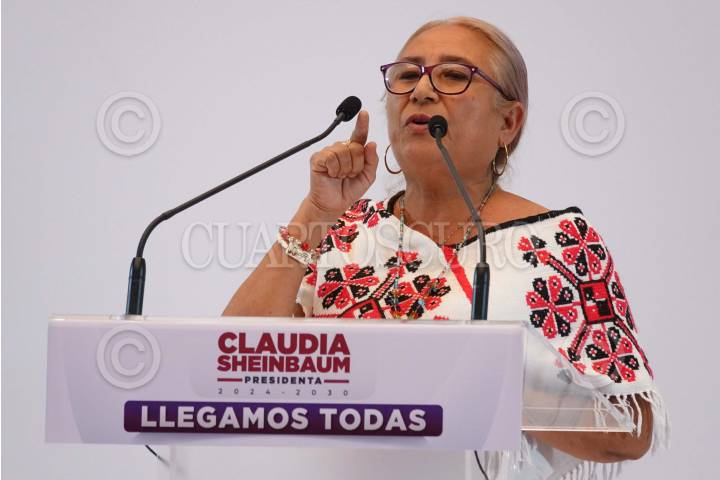 CIUDAD DE MÉXICO, 16JULIO2024.- Salustia Pacheco Hernández, integrante del Comité de la Asociación del Reencuentro Étnico Nacional, durante su participación en el Encuentro con Mujeres de 60 a 64 años "Llegamos todas", realizado en el Museo de la Ciudad de México. FOTO: GRACIELA LÓPEZ /CUARTOSCURO.COM