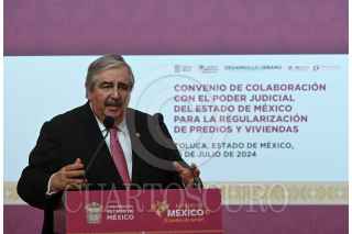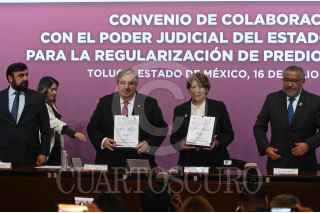 TOLUCA, ESTADO DE MÉXICO, 16JULIO2024.- Delfina Gómez Álvarez, Gobernadora del Estado de México y Ricardo Sodi Cuéllar Magistrado Presidente del Poder Judicial del Estado de México firmaron el Convenio de Colaboración para la Regularización de Predios y Viviendas. FOTO: CRISANTA ESPINOSA AGUILAR /CUARTOSCURO.COM