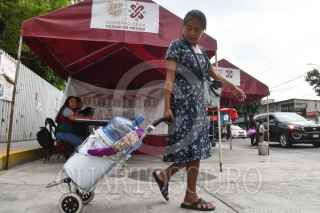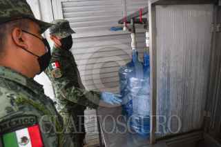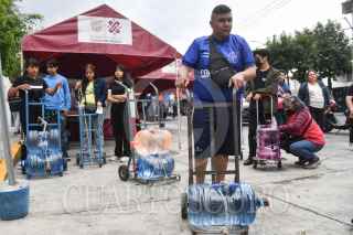 CIUDAD DE MÉXICO, 16JULIO2024.- Vecinos de la colonia Pedregal de Santo Domingo se abastecen de agua en la planta potabilizadora instalada en el Centro DIF Familia Juárez Maza por el Plan DN-III E de la Secretaría de la Defensa Nacional (SEDENA) luego de que se reportará en los últimos meses un ligera escasez y distribución del vital líquido en la colonia. Autoridades de la capital informaron que el apoyo inicio desde el pasado 22 de abril con un horario se operación de lunes a viernes de las 9 a las 17:30 horas. FOTO: MARIO JASSO/CUARTOSCURO.COM