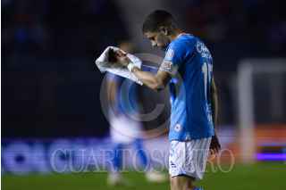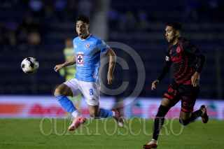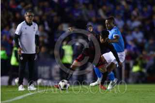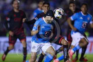CIUDAD DE MÉXICO, 16JULIO2024. El jugador de Xolos, Nicolás Díaz recibe una pelota con el pecho marcado por Lorenzo Faravelli de la Máquina Celeste durante el partido de fútbol Cruz Azul vs Tijuana correspondiente a la jornada 3 del Torneo Apertura 2024 de Liga BBVA MX, en el Estadio Ciudad de los Deportes. FOTO: EDGAR NEGRETE LIRA/CUARTOSCURO.COM