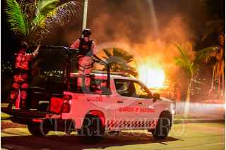 ACAPULCO, GUERRERO. 17JULIO2024.- UDurante la madrugada los restaurantes Crepas Dubai , Mi Vereda Tropical y Marea Salada, ubicados en la franja de arena de la playa Papagayo, sufrieron un incendio que consumió en su totalidad los restaurantes, hasta el momento las autoridades no han informado las causas del incendio, sin embargo este hecho se une a otros casos de negocios que se incendian en las playas del puerto. FOTO: CARLOS CARBAJAL/CUARTOSCURO.COM