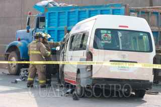 CIUDAD DE MÉXICO, 16JULIO2024.- Se impacto una combi de pasajeros como la parte trasera de un camión que dejó un saldo de 14 heridos y una mujer muerta, que viajaba de copiloto. Los hechos en boulevard Benito Juárez, colonia Lázaro Cárdenas. FOTO: ROGELIO MORALES/CUARTOSCURO.COM