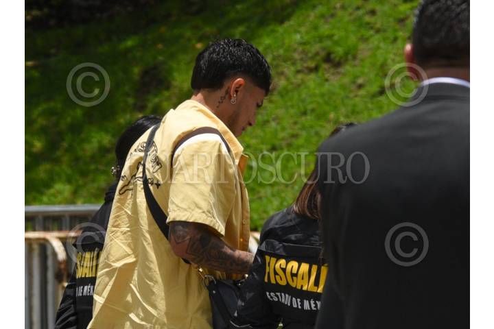 TOLUCA, ESTADO DE MÉXICO, 18JULIO2024.- El futbolista Carlos Salcedo acudió a las instalaciones de la Fiscalía General de Justicia del Estado de México después de recibir un citatorio para declarar en relación al asesinato de su hermana a Martha Paola, arribó alrededor de las 12:30 horas del día. FOTO: CRISANTA ESPINOSA AGUILAR /CUARTOSCURO.COM
