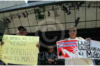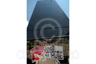 MÉXICO, D.F. 18AGOSTO2007.- Alrededor de diez personas realizaron una protesta en contra de la construcción del muro fronterizo a las afueras de la torre caballito. FOTO: PAOLA HIDALGO/CUARTOSCURO.COM