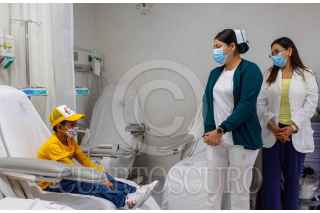 TAPACHULA, CHIAPAS, 18JULIO2024.- El Instituto Mexicano del Seguro Social (IMSS) reconoció el esfuerzo y valor de Maxi, un paciente pediátrico oncológico de Chiapas, tras superar la Leucemia Linfoblástica Aguda (LLA) y tocar la emblemática “campana de la vida”, después de recibir durante tres años atención integral por parte del personal del Centro de Referencia Estatal para la Atención del Niño y de la Niña con Cáncer (OncoCREAN) en el Hospital General de Zona (HGZ) No. 1 Nueva Frontera en Tapachula. Desde abril de 2021, cuando Maxi tenía sólo 6 años, hasta febrero de 2024, ha demostrado una inquebrantable determinación y un gran compromiso con el tratamiento que, en conjunto con el apoyo de su familia, ha permitido que su recuperación sea óptima y comience con el periodo de vigilancia médica. FOTO: IMSS/CUARTOSCURO.COM