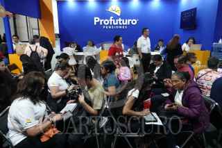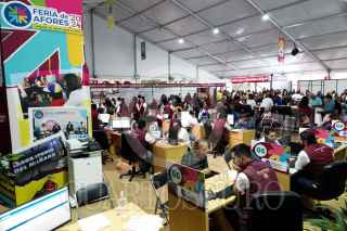 CIUDAD DE MÉXICO, 18JULIO2024.- Cientos de personas acudieron a realizar trámites durante la Feria de Afores 2024 en la plancha del Zócalo, la cual se llevará a cabo del 18 al 21 de julio. FOTO: GRACIELA LÓPEZ/CUARTOSCURO.COM