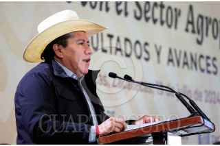 ZACATECAS ZACATECAS. 19JULIO2024.- Andrés Manuel López Obrador, presidente Constitucional de los Estados Unidos Mexicanos y Claudia Sheinbaum Pardo virtual presidenta electa de los Estados Unidos Mexicanos presiden Encuentro con el sector agropecuario en el Palacio de Convenciones de Zacatecas. Lo acompañan Carlos Gastón Torres Rosas, secretario técnico del Gabinete de la Presidencia y coordinador general de Programas para el Bienestar; Arturo Macosay Córdova, coordinador general de Ganadería de la Secretaria de Agricultura y Desarrollo Rural; Víctor Suárez Carrera, subsecretario de Autosuficiencia Alimentaria de la Secretaría de Agricultura y Desarrollo Rural, responsable del Programa “Producción para el Bienestar”; Víctor Manuel Villalobos Arámbula, secretario de Agricultura y Desarrollo Rural. Arely Cerón Trejo, coordinadora general del Programa de Fertilizantes para el Bienestar de la Secretaria de Agricultura y Desarrollo Rural; Santiago Arguello Campos, coordinador general de Agricultura de la Secretaria de Agricultura y Desarrollo Rural; David Monreal Ávila, Gobernador Constitucional del Estado de Zacatecas. FOTO: PRESIDENCIA/CUARTOSCURO.COM
