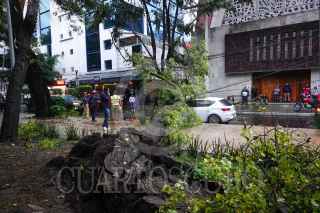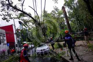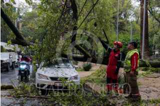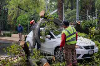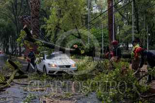 CIUDAD DE MÉXICO, 19JULIO2024.- Un árbol cayó sobre un auto que circulaba sobre Calzada Villalongín, el conductor resultó ileso. Cabe mencionar que debido a las intensas lluvias se han reportado diversas caídas de árboles en la capital del país. FOTO: ALICE MORITZ/ ROGELIO MORALES/CUARTOSCURO.COM