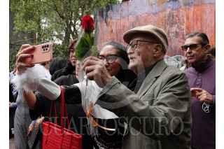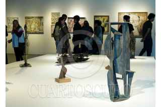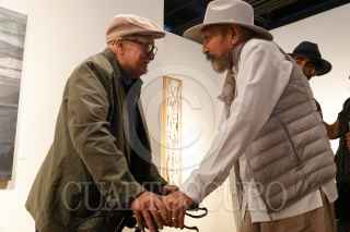 CIUDAD DE MÉXICO, 20JULIO2024.- El artista plástico Gabriel Macotela y el artista Arnoldo Coen durante la inauguración de la exposición "Gabriel Macotela 70 años de algarabía", en la Galería 526 en la colonia Polanco. El artista estuvo acompañando por amigos, familiares y público en general que podrán disfrutar hasta el mes de septiembre de la muestra. FOTO: GALO CAÑAS/CUARTOSCURO.COM