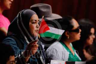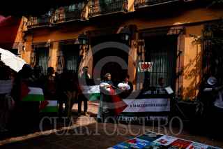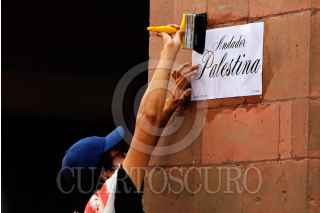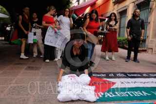 QUERÉTARO, QUERÉTARO, 20JULIO2024.- El colectivo "Qro con Palestina" convocó a una manifestación pacífica que comenzó en el jardín Guerrero y culminó en plaza de armas. En en el evento hubo micrófono abierto donde los activistas expresaron su sentir referente a la ocupación que lleva a cabo Israel en territorio palestino desde 1948. FOTO: CÉSAR GÓMEZ/CUARTOSCURO.COM