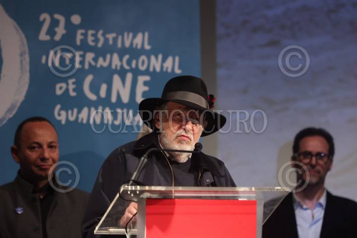 LEÓN, GUANAJUATO, 20JULIO2024. El cineasta Arturo Ripstein durante su homenaje por parte del Festival Internacional de Cine de Guanajuato (GIFF) en su edición número 27, en el Teatro Bicentenario. FOTO: EDGAR NEGRETE LIRA/CUARTOSCURO.COM