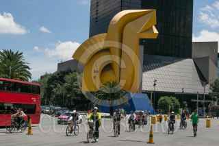 CIUDAD DE MÉXICO, 21JULIO2024.- Corredores y ciclistas pasan frente al Monumento al Caballito en Paseo de la Reforma. FOTO: MOISÉS PABLO/CUARTOSCURO.COM