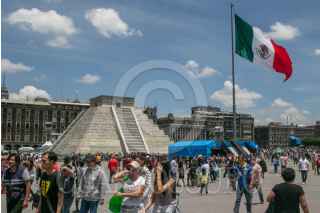 CIUDAD DE MÉXICO, 21JULIO2024.- Gran expectación ha causado la replica de la pirámide de Kukulcán de la cultura Maya en el Zócalo capitalino, FOTO: MOISÉS PABLO/CUARTOSCURO.COM
