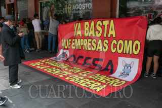 CIUDAD DE MÉXICO, 21JULIO2024.- Supuestos trabajadores de Ocesa se manifestaron en las inmediaciones del Teatro Metropólitan para exigir el pago de sus salarios. FOTO: MOISÉS PABLO/CUARTOSCURO.COM