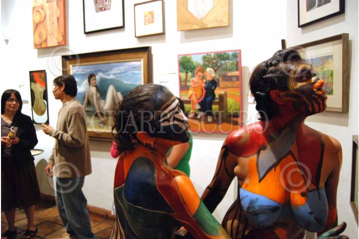 ACATECAS, ZAC.18.AGOSTO.2007.- Javier Cortés, pintor Zacatecano, curador de la exposición: Amor, Sexualidad y erotismo en la que participan artistas platicos de varias partes del país, dentro del Festival cultural de la diversidad sexual. Los asistentes disfrutaron de un performance que monto Jesús Reyes Cordero también pintor y participante en la muestra que se inauguro anoche. FOTO: CARLOS SEGURA PEREZ/ESPECIAL/CUARTOSCURO.COM