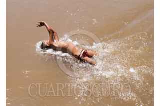 SUCHIATE, CHIAPAS. 24JULIO2024.- A pesar que salio caravana, siguen arribando migrantes, en sumayoria Venezolanos. Las personas se tienen que formar y organizar una lista para poder ser trasladados a Tuxtla Gutiérrez. En en el río los niños se bañan. FOTO: DAMIÁN SÁNCHEZ/CUARTOSCURO.COM