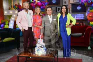 CIUDAD DE MÉXICO, 25JULIO2024.- Los conductores: Eduardo Carrillo; Érika González; Addis Tuñon y Gustavo A. Infante, durante el programa de "D7M" en el marco de su séptimo aniversario en Imagen Televisión. FOTO: MARIO JASSO/CUARTOSCURO.COM