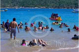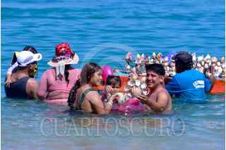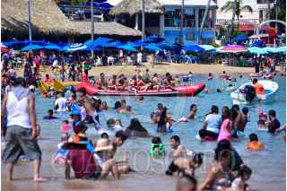 ACAPULCO, GUERRERO, 26JULIO2024.- Las populares playas de Caleta y Caletilla en Acapulco lucen llenas de turistas durante esta temporada vacacional en el puerto FOTO: CARLOS CARBAJAL/CUARTOSCURO.COM