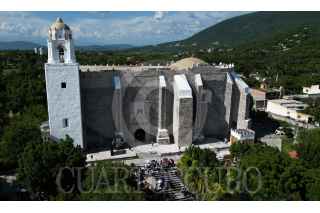 TLAQUILTENANGO, MORELOS, 26JULIO2024.- Andrés Manuel López Obrador, presidente de México, y Claudia Sheinbaum Pardo virtual presidenta electa encabezaron la evaluación del Programa Nacional de Reconstrucción en la Parroquia de Santo Domingo de Guzmán. Ambos estuvieron acompañandos de: Diego Prieto Hernández, director general del Instituto Nacional de Antropología e Historia; Edna Elena Vega Rangel, subsecretaria de Ordenamiento Territorial y Agrario; Margarita González Saravia, gobernadora electa del Estado de Morelos; Luz Eugenia Salgado Chávez, restauradora; Alejandra Frausto Guerrero, secretaria de Cultura; Elisa Ruiz Covarrubias, directora de Estudios y Proyectos de la Secretaría de Cultura; Héctor Gómez Rodríguez, párroco del templo; Cuauhtémoc Blanco Bravo, gobernador Constitucional del Estado de Morelos; Carlos Franco Ruiz, presidente municipal de Tlaquiltenango, Morelos; Román Meyer Falcón, secretario de Desarrollo Agrario, Territorial y Urbano; Arturo Balandrano Campos, director general de Sitios y Monumentos del Patrimonio Cultural de la Secretaría de Cultura; Claudia Curiel de Icaza, próxima secretaria de Cultura; Juan Pablo de Botton Falcón, subsecretario de Egresos de la Secretaría de Hacienda y Crédito Público y Miguel Ángel Sánchez Canto, trabajador de la construcción. FOTO: PRESIDENCIA/CUARTOSCURO.COM
