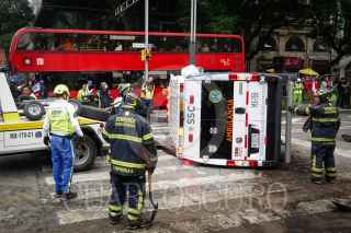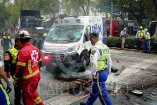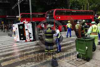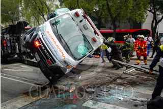 CIUDAD DE MÉXICO, 26JULIO2024.- Una ambulancia del Escuadrón de Rescate y Urgencias Médicas (ERUM), volcó mientras circulaba por Paseo de la Reforma esquina con calle París de la colonia Juárez en la alcaldía Cuauhtémoc, no se reportaron personas lesionadas. FOTOS: ROGELIO MORALES /CUARTOSCURO.COM