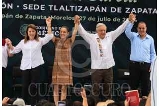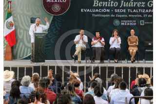 TLALTIZAPAN DE ZAPATA, MORELOS, 27JULIO2024.- Andrés Manuel López Obrador, presidente de la República encabezó el evento "Evaluación de las Universidades del Bienestar Benito Juárez García " en este municipio. Estuvo acompañado del gobernador Cuauhtémoc Blanco Bravo, la gobernadora electa Margarita González Saravia y la presidenta electa, Claudia Sheinbaum Pardo. FOTO: MARGARITO PÉREZ RETANA/ CUARTOSCURO.COM