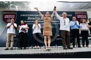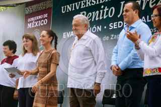 TLALTIZAPÁN DE ZAPATA, MORELOS, 27JULIO2024.- Andrés Manuel López Obrador, presidente de México, y Claudia Sheinbaum Pardo virtual presidenta electa, supervisaron los trabajos de las Universidades para el Bienestar “Benito Juárez García” en el plantel Tlaltizapán. Ambos estuvieron acompañados por: Jair Díaz Hurtado, coordinador académico del Plantel Tlaltizapán de las Universidades para el Bienestar “Benito Juárez García”; Raquel Sosa Elízaga, directora general de las Universidades para el Bienestar “Benito Juárez García”; Margarita González Saravia, gobernadora electa del Estado de Morelos; Cuauhtémoc Blanco Bravo, gobernador Constitucional del Estado de Morelos; Leticia Ramírez Amaya, secretaria de Educación Pública y Juan Pablo de Botton Falcón, subsecretario de Egresos de la Secretaría de Hacienda y Crédito Público. FOTO: PRESIDENCIA/CUARTOSCURO.COM