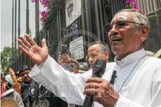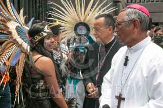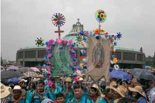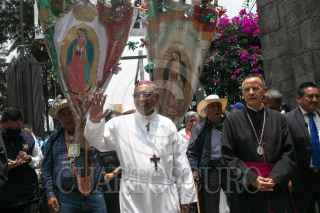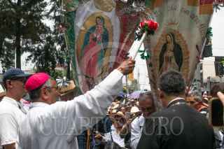 CIUDAD DE MÉXICO, 28JULIO2024.- Fidencio López Plaza, obispo de Querétaro, y Efraín Hernández, rector de la Basílica de Guadalupe, recibieron a la columna de la Diócesis de Querétaro, la cual estaba conformada por 32 mil feligreses, quienes llegaron este medio día al templo mariano, en el marco de su peregrinación anual. FOTO: MOISÉS PABLO/CUARTOSCURO.COM