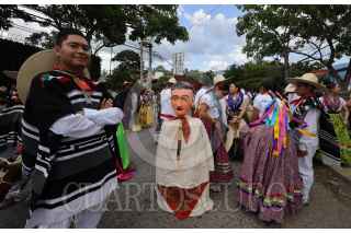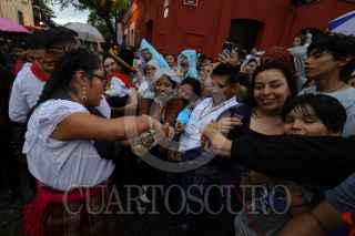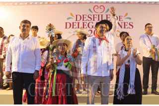 OAXACA, OAXACA, 27JULIO2024.- A pesar de la lluvia, delegaciones participantes de la Octava del Lunes del Cerro participaron en un desfile por la principales calles de la ciudad de Oaxaca. Miles de personas disfrutaron de la música, el colorido, las tradiciones y cultura de los 16 pueblos originarios y el afromexicano, representados en 30 delegaciones que el próximo lunes 29 de julio participarán en el auditorio Guelaguetza. FOTO: CAROLINA JIMÉNEZ/CUARTOSCURO.COM