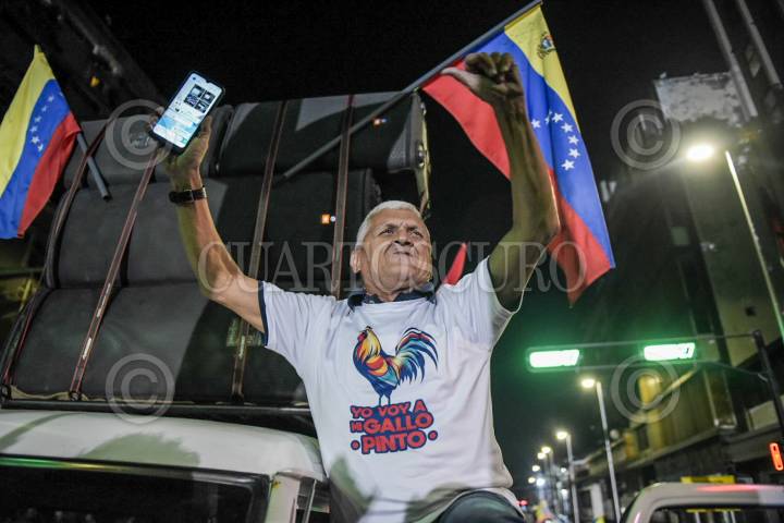 CARACAS, VENEZUELA, 28JULIO2024.- A la media noche del 28 de julio, en Consejo Nacional Electoral (CNE), anunció que con el 80 por ciento los votos contados, el triunfo del actual presidente Nicolás Maduro Moros, era irreversible. Según la información proporcionada Maduro se reelige con el 51por ciento la votación por 6 años más de gobierno; su más cercano adversario Edmundo Gonzales del (PUD), obtuvo alrededor del 44?l total de la votación. Tras el anuncio Maduro emitió un mensaje desde el palacio de Miraflores donde agradeció al pueblo venezolano que lo apoyó y arremetió contra otros otros gobiernos a los que calificó de intervencionistas. También anunció nuevos decretos para su nuevo gobierno donde destacó que buscará la unidad del pueblo venezolano. FOTO: ISRAEL FUGUEMANN /CUARTOSCURO.COM