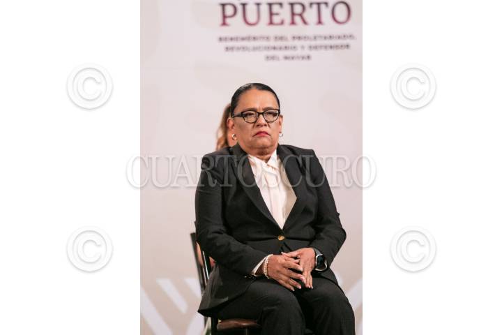 CIUDAD DE MÉXICO, 29JULIO2024.- Rosa Icela Rodríguez, secretaria de Seguridad, dip detalles de la detención de Ismael "Mayo" Zambada, durante la mañanera. FOTO: MOISÉS PABLO/CUARTOSCURO.COM