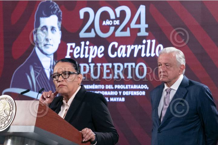 CIUDAD DE MÉXICO, 29JULIO2024.- Andrés Manuel López Obrador, Presidente de México, habló de la detención de Ismael "Mayo" Zambada, junto con Rosa Icela Rodríguez, titular de la SSyPC, durante la mañanera. FOTO: MOISÉS PABLO/CUARTOSCURO.COM