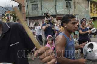 CARACAS, VENEZUELA, 29JULIO2024.- Habitantes del barrio "La Lucha", al este de la capital venezolana, salieron a las calles para protestar por los resultados de la elección presidencial del día de ayer 28 de julio, en donde Nicolás Maduro fue nombrado como ganador de la elección presidencial. Los “cacerolazos”, son una forma de protesta que busca hacer bulla y demostrar su incomodidad ante la situación político social. FOTO: ISRAEL FUGUEMANN /CUARTOSCURO.COM