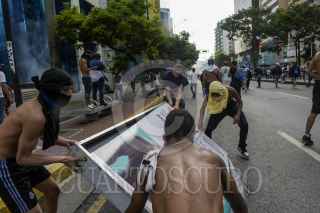 CARACAS, VENEZUELA, 29JULIO2024.- Cientos de personas salieron a protestar por la tarde de este 29 de julio, luego de que la noche de ayer el Consejo Nacional Electoral (CNE), diera a conocer los datos que daban por “ganador irreversible”, al candidato y presidente venezolano Nicolás Maduro. La concentración nació en uno de los barrios más icónicos de la ciudad, “El Petare”. Las consignas eran de descontento por el resultado. Los enfrentamientos subieron de tono luego de que la Guardia Nacional Bolivariana salió a la calles para detener el avance de los manifestantes. FOTO: ISRAEL FUGUEMANN /CUARTOSCURO.COM